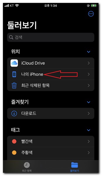 파일 앱 -> 둘러보기 -> 나의 iPhone 선택한다.