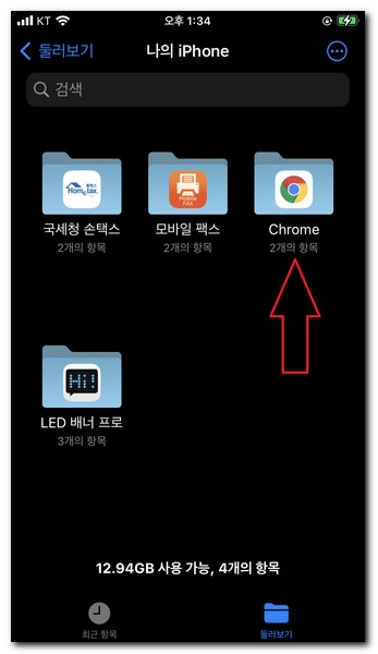 아이폰에 chrome 브라우저가 설치되어 있는지 확인하고 설치가 안되어 있으면 설치한다.