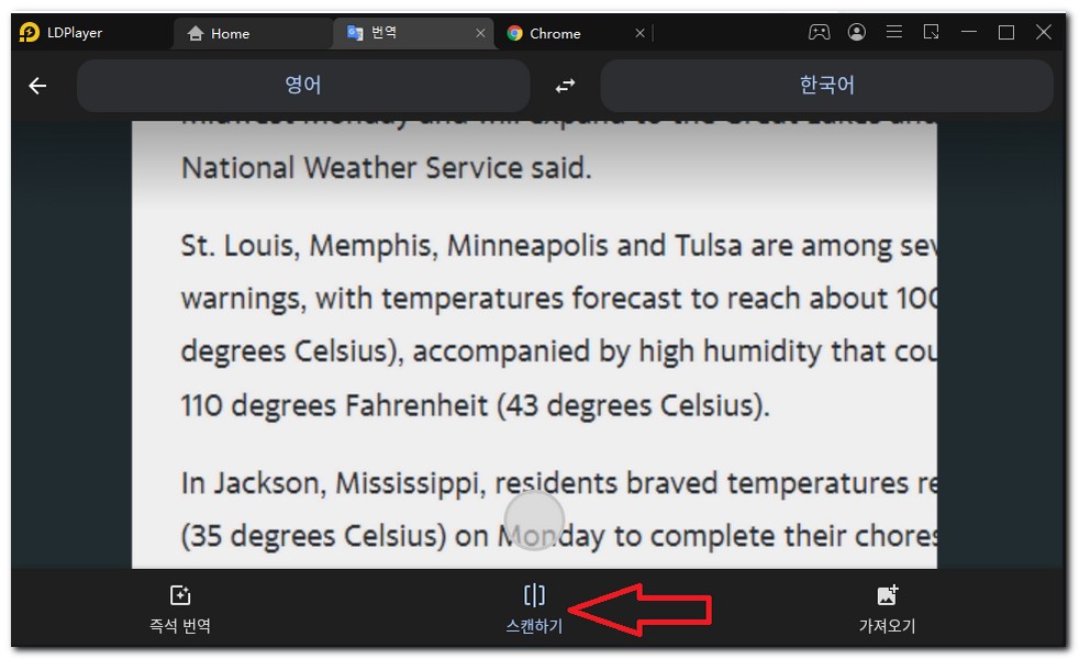 특정한 문자나 문장을 선택해서 스캔 번역을 진행하면 된다.