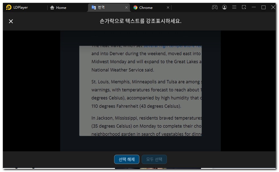 그럼 현재 화면 전체에 대해서 스캔해서 번역을 하거나 부분적으로 번역이 가능하도록 되어 있다.
