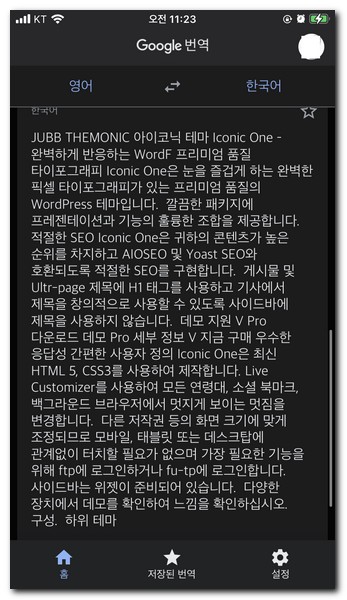 상단 메뉴에서 현재 사용되고 있는 언어와 번역할 언어(한국어)를 선택해주면 된다.
