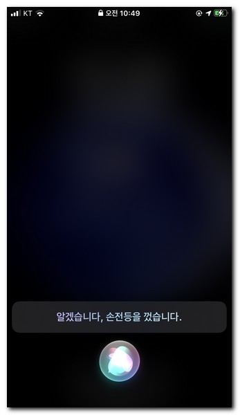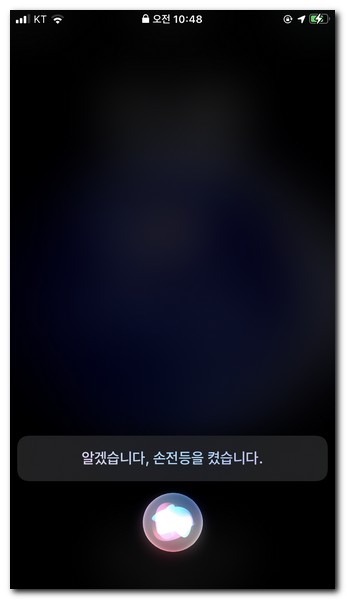 "시리야~ 손전등 켜줄래?" "시리야~ 손전등 좀 킬래?" "시리야~ 손전등 켜줘"