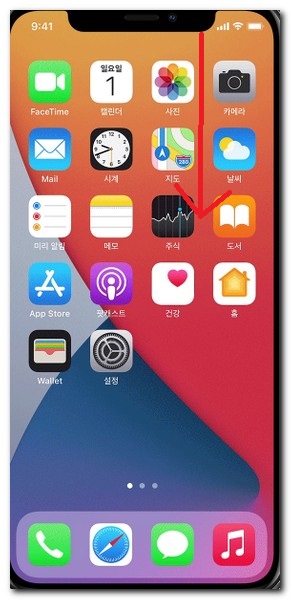 아이폰 잠금화면 또는 홈화면에서 하단 스크롤을 위로 올린다.