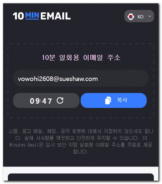 10분 이메일 사이트는 딱 10분동안만 임시 이메일 주소를 사용할 수 있다.