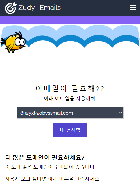 zudy 이메일 사이트는 임시 이메일 주소와 1초 이메일 주소 여러개를 제공해주는 사이트다.