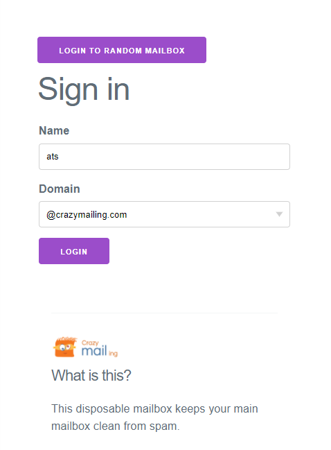 crazymailing 임시 이메일 사이트는 메일 이름만 입력해서 로그인을 하면 자동으로 임시 이메일 편지함으로 이동한다.