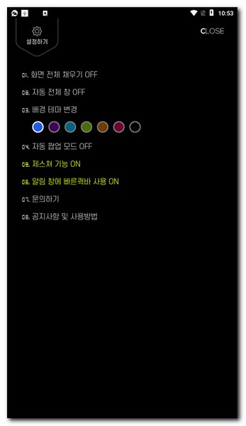 알림 창에 빠른퀵바 사용 ON/OFF
