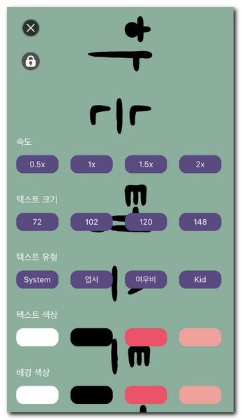 글씨가 지나가는 속도와 글자크기, 글자 유형, 글자 색상, 배경색상 등을 선택할 수 있다. 마음에 드는걸로 선택하면 된다.