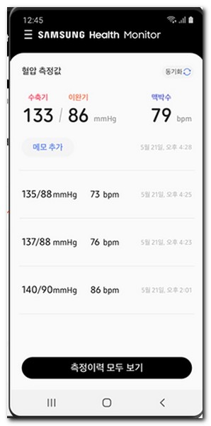 측정된 혈압 값은 갤럭시 워치나 갤럭시 스마트폰에서 언제든지 확인