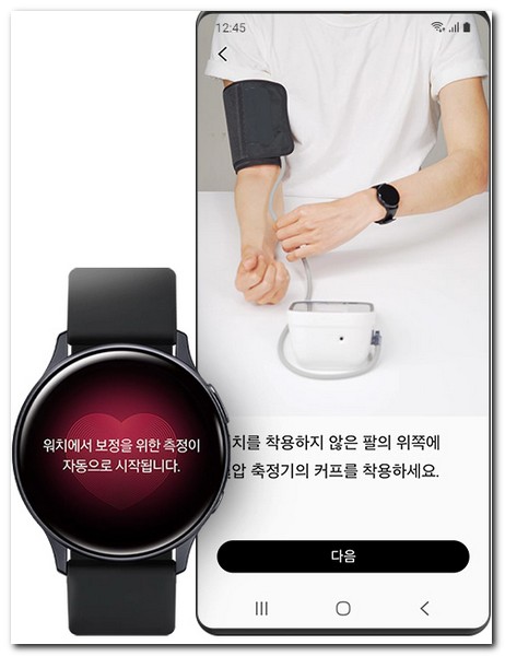 식약처 허가(인증)를 받은 커프형 혈압계 중, 팔의 위쪽에서의 측정을 지원하는 혈압계를 이용해 갤럭시 워치의 측정값을 보정