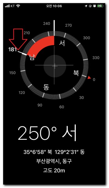 아이폰 나침반 방향 좌표 고도 보기