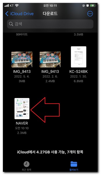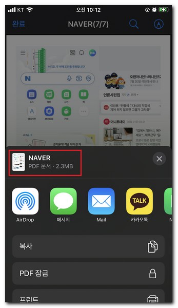아이폰에서는 pdf 문서 파일을 별도의 뷰어 어플 설치 없이도 볼 수 있게 되어 있다.