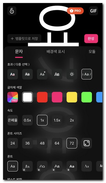 X표시 말고 상단 빈 공간을 터치하게 되면 방금 적용된 글자 설정 모양을 확인할 수 있다.