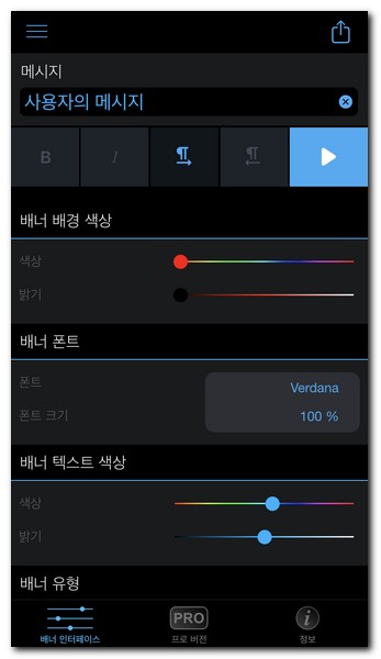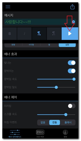 배너 효과와 배너 제어등 더 많은 기능들을 선택한 후에 ▶ 버튼을 터치한다.