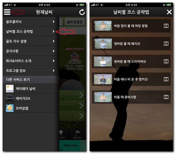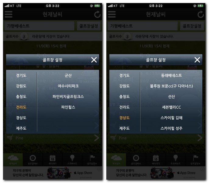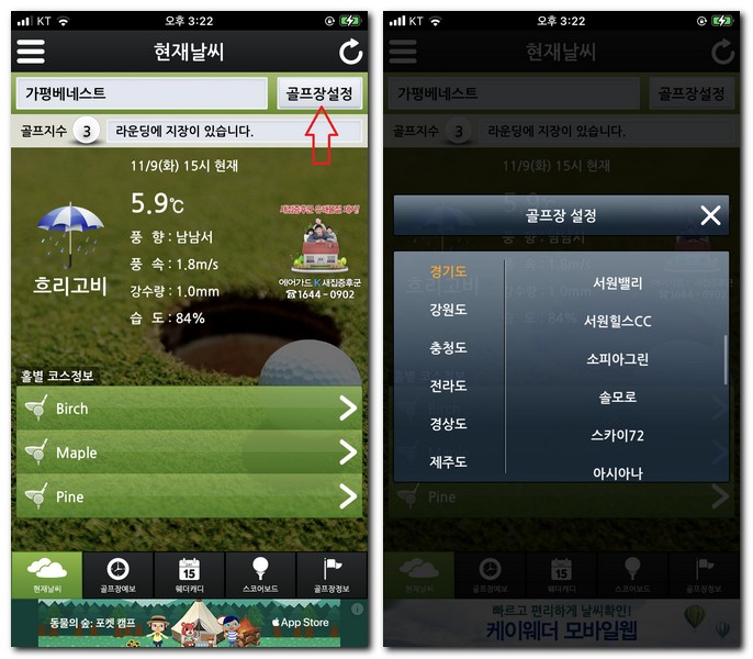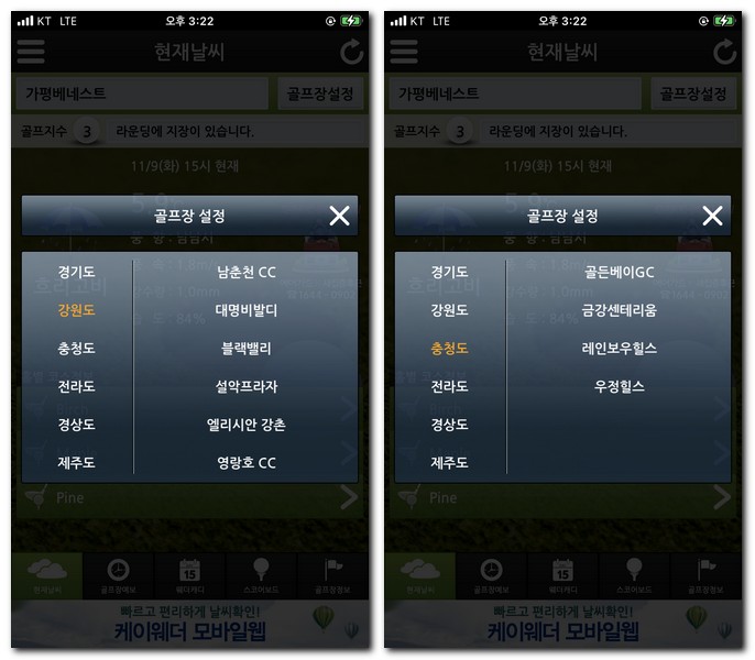 전국 골프장 날씨 예보 어플 사용방법