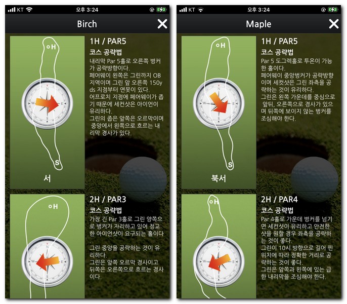 이제 날씨 상황에서 홀별 코스정보를 확인해볼 수 있다.