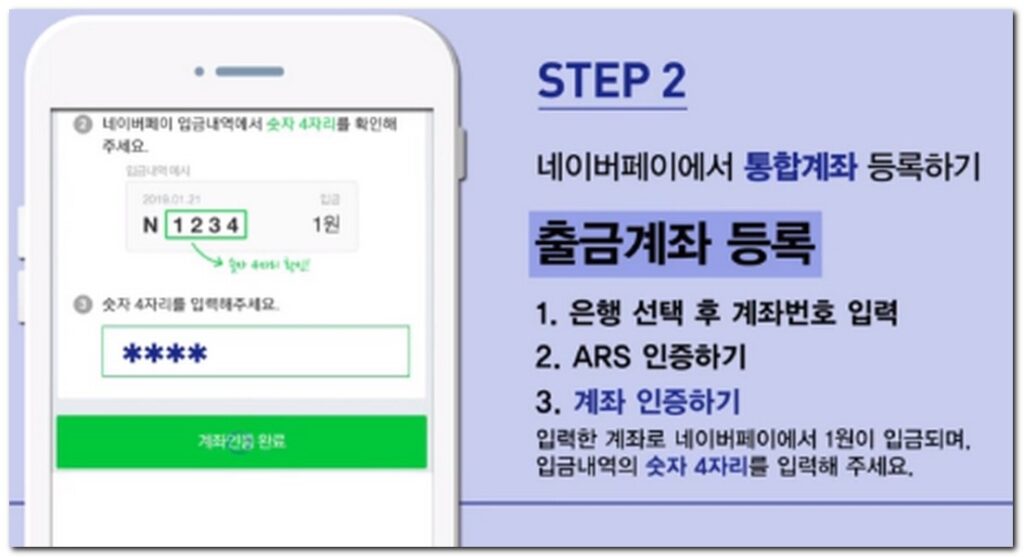 네이버페이에서 통합계좌 등록하기 출금계좌 등록을 진행해줘야 됨.