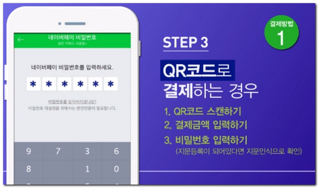 만약 매장내 직원이 있는 경우 사용자의 휴대폰에서 간편결제 앱으로 QR코드를 생성해서 매장직원이 QR스캐너로 휴대폰의 QR코드를 스캔하게 되면 결제가 완료된다.