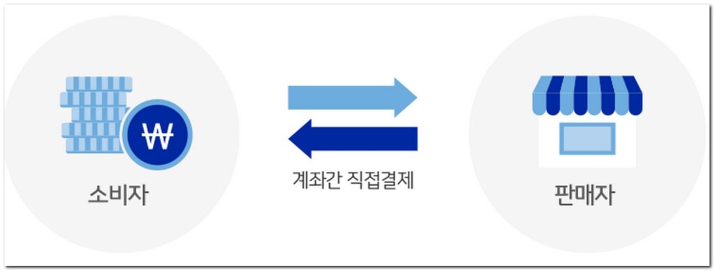 소비자는 간편하게 가맹점에서 QR코드를 인식해서 결제되며 내 통장에서 바로 가맹점으로 요금이 이체되는 방식이다.
