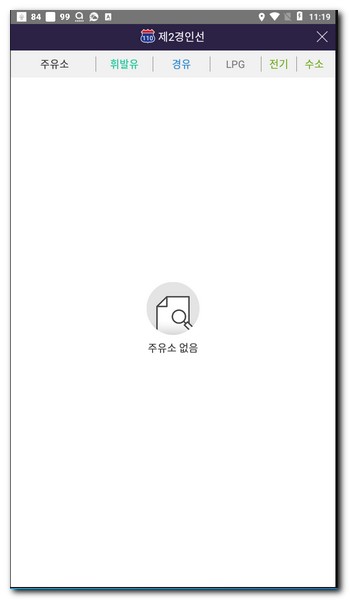 제2경인고속도로의 경우 주유소 정보를 확인할 수 없다. 해당 고속도로에는 주유소가 없다는 뜻이다.
