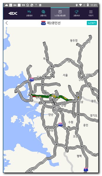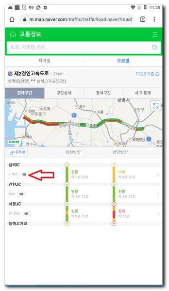 네이버에 접속하게 되면 제2경인고속도로의 교통정보를 확인할 수 있다.
