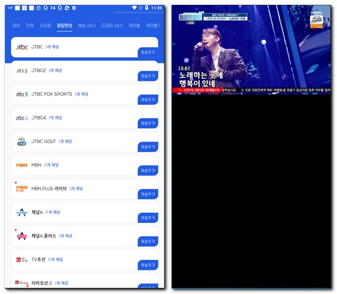 MBN 채널 3개가 존재한다. MBN이랑 MBN PLUS라이브 방송이다.