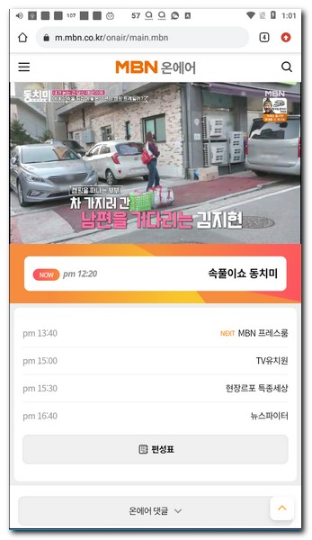 mbn뉴스 뿐만 아니라 다양한 예능프로그램도 온에어 페이지에서 공짜로 볼 수 있기 때문에 부담없이 이용할 수 있으며 댓글을 보면서 사람들과 소통도 할 수 있다.