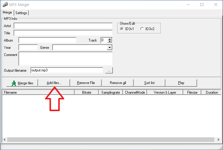 MP3 Merger라는 프로그램을 다운 받아서 실행한다. 무료로 사용할 수 있는 프리 소프트웨어다.