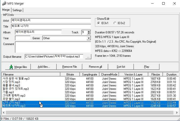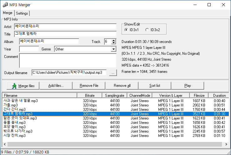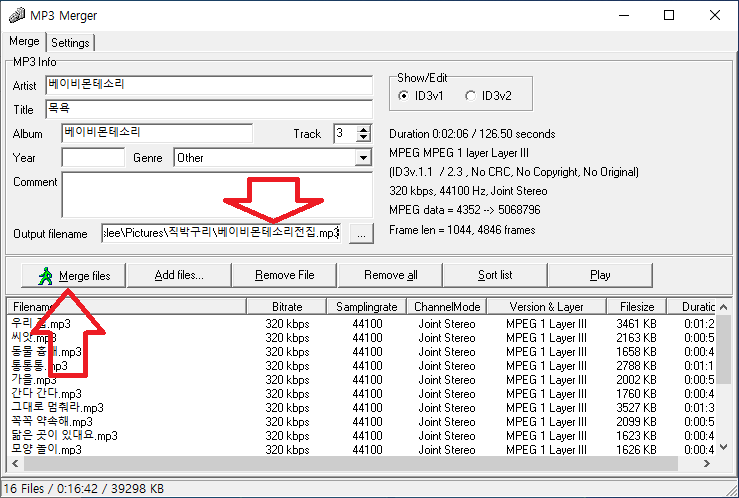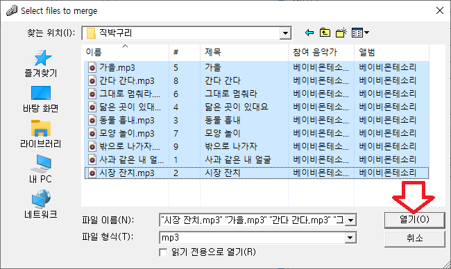 특히 음악감상중에 끊김없이 mp3음악을 감상하기 위해서 여러개의 파일을 합치기를 통해서 하나의 음악파일처럼 감상함으로써 여러번 반복재생을 할 필요도 없다. 우선 어떻게 하면 되는지 아래 가이드라인을 살펴보기 바란다.