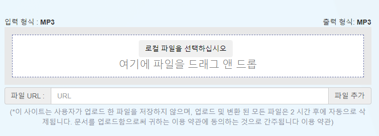 파일 선택해서 병합하면 된다. 프로그램 설치 없이 쉽게할 수 있는 장점이 있다. 내 컴퓨터에 있는 파일 뿐만 아니라 인터넷 url에 있는 음악파일 경로도 합치기가 가능하다.