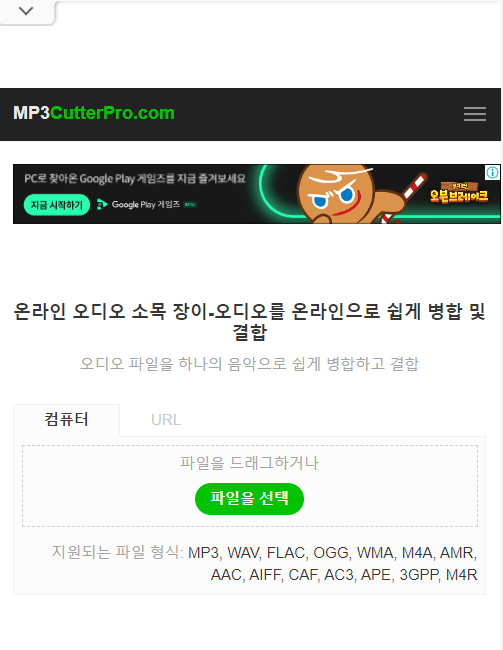 프로그램설치 없이 웹사이트에서 바로 여러개의 음악파일을 합칠 수 있다. 컴퓨터(PC), 노트북, 태블릿pc, 스마트폰에서도 작업할 수 있기 때문에 많은 장점이 있다.1) mp3cutterpro