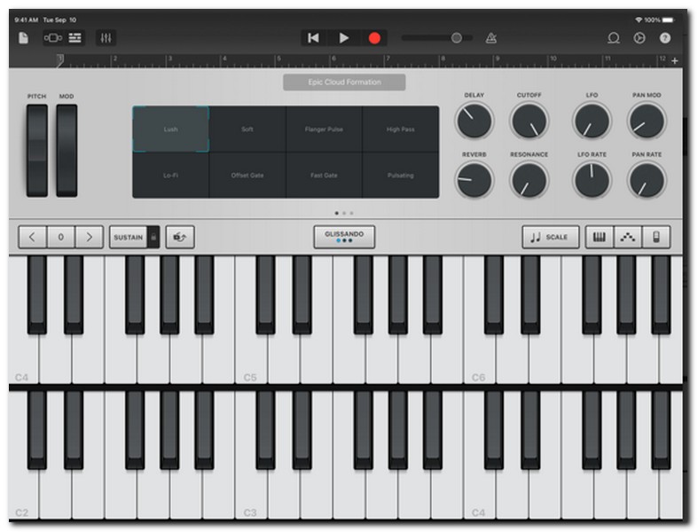이 앱의 특징은 usb를 통해서 외부 미디 키보드를 지원하는 장점이 있다.