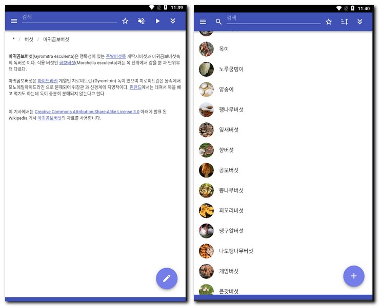 버섯 검색 어플
