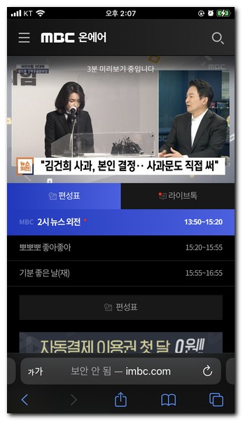 mbc온에어 사이트에 접속하면 3분 미리보기로 tv시청이 된다. mbc회원가입 및 로그인을 통해서 무료로 tv시청이 가능하다. 로그인 없이 tv시청은 미리보기만 된다는점 참고하기 바란다.
