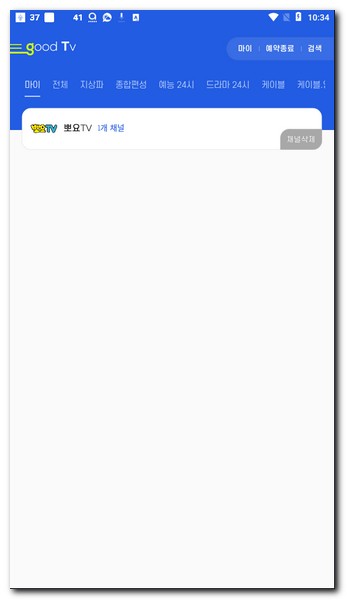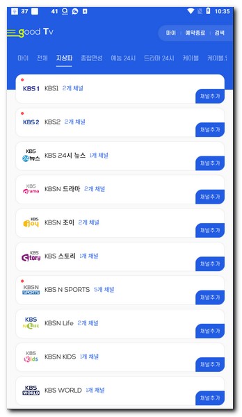 전체 채널, 지상파, 종합편성, 예능24시 등 다양한 카테고리로 되어 있고 본인이 보고 싶은 채널을 선택해서 tv시청을 하면 된다.