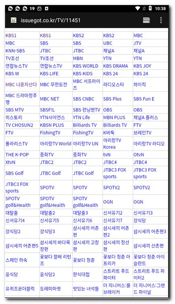 이슈갓이라는 사이트가 있는데, 이곳에서는 KBS1, KBS2, MBC, SBS, UBC, JTV, KNN, JTBC, 채널A 등 지상파, 공중파, 종합편성채널까지 대부분의 채널에 무료로 접속해서 시청할 수 있도록 만들어진 사이트다.