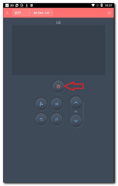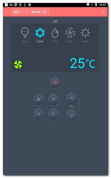 디스플레이 화면에 온도설정과 함께 바람세기, 온도 조절, 바람 방향 조절 등 LG 리모컨에서 기본적으로 제공해주는 동작 기능을 사용할 수 있게 된다.